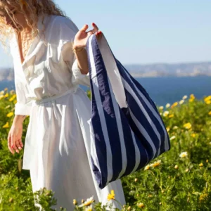 The Marthe tote bag with an upcycled feel. Easy to carry, it’s lightweight, practical, and chic. Each model is unique, or available in mini editions.